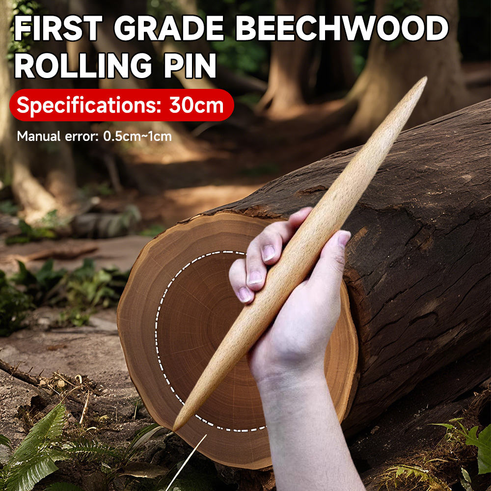 Enhance your pastry and baking experience with the expertly crafted 11.81” double-pointed wooden rolling pin. Designed with precision and functionality in mind, this rolling pin provides an effortless way to roll out doughs with smooth, even results. Its double-pointed design ensures optimal ease of use, making it an essential tool for both beginners and seasoned bakers.