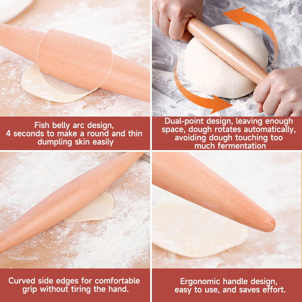11.81” Double-Pointed Solid Wood Rolling Pin, Double-Tipped Dumpling Wrapper Rolling Pin, Baking Tool, Wholesale