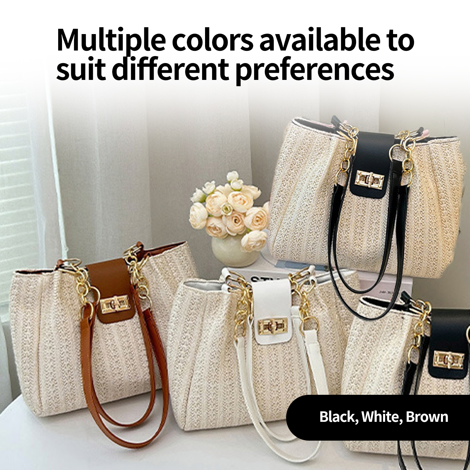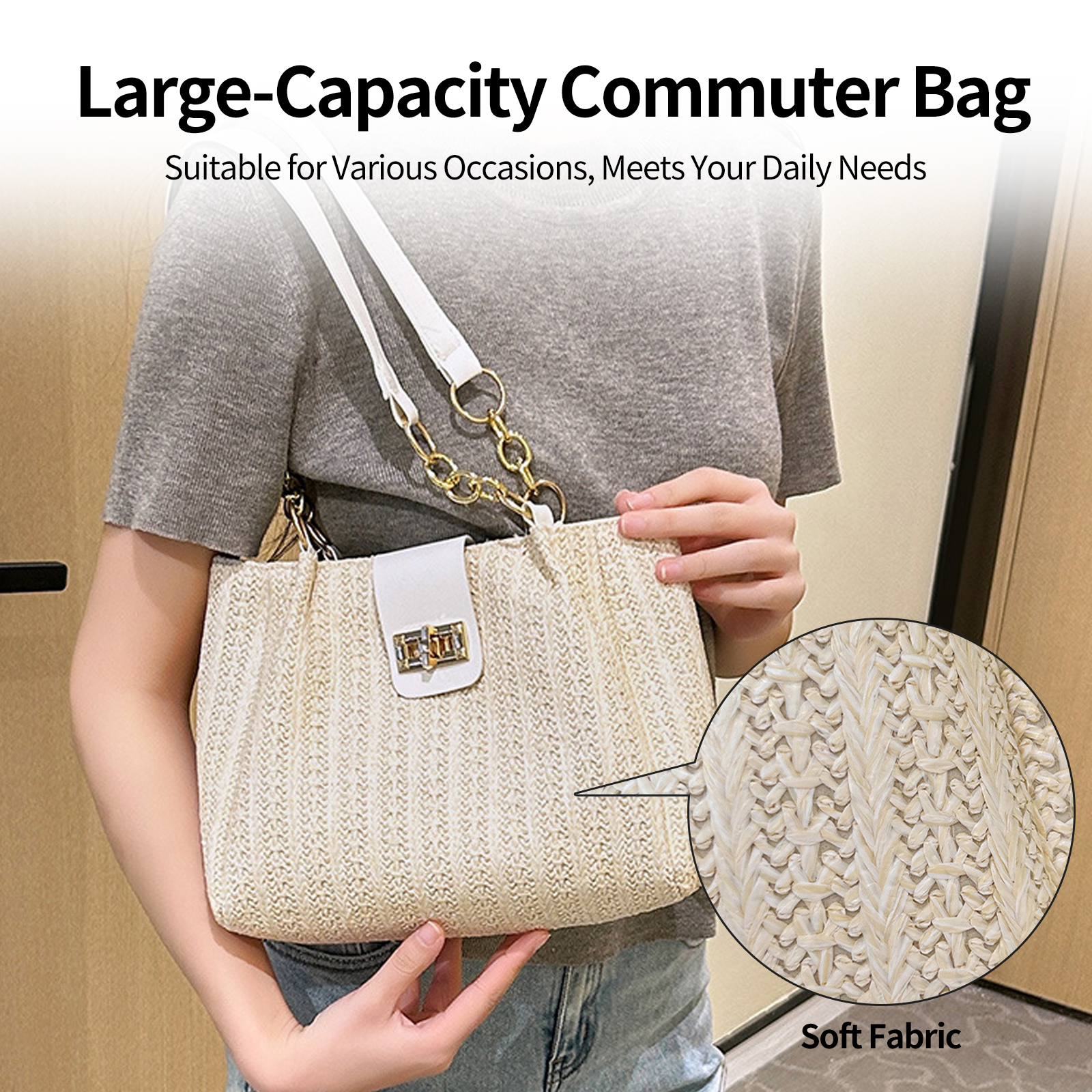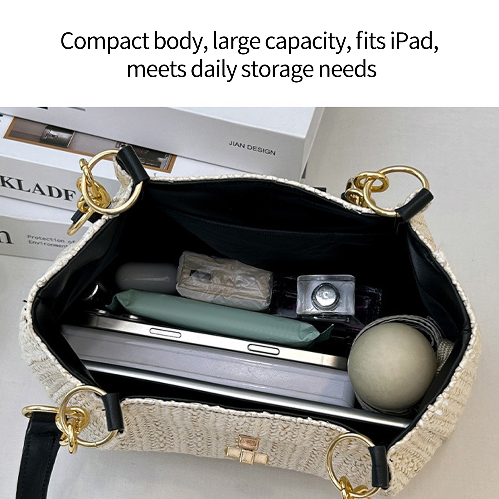 2025 Women’s Spring New Style Chanel-inspired Bag, Versatile for Work and Commuting, Large Capacity Straw Woven Shoulder Bag for Women