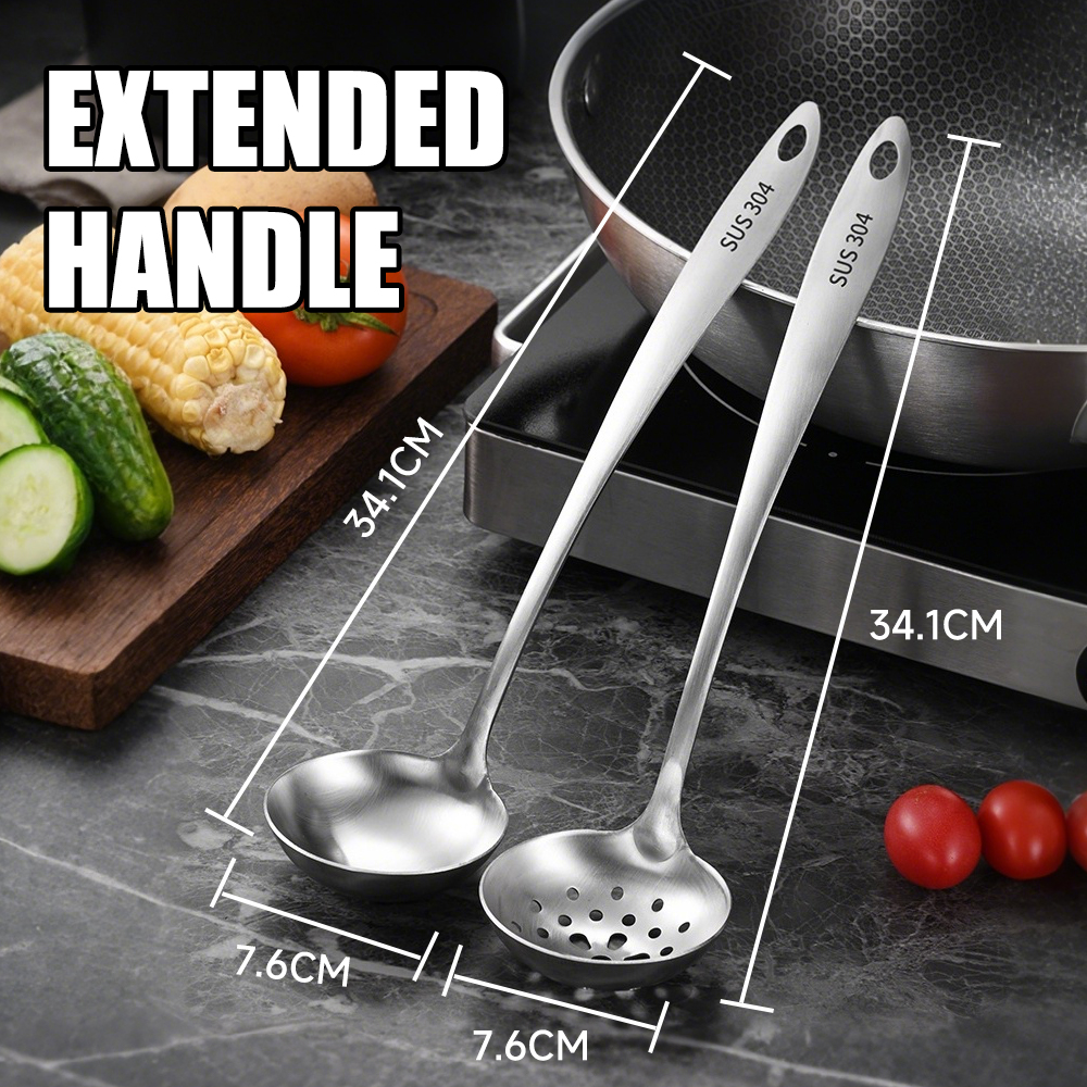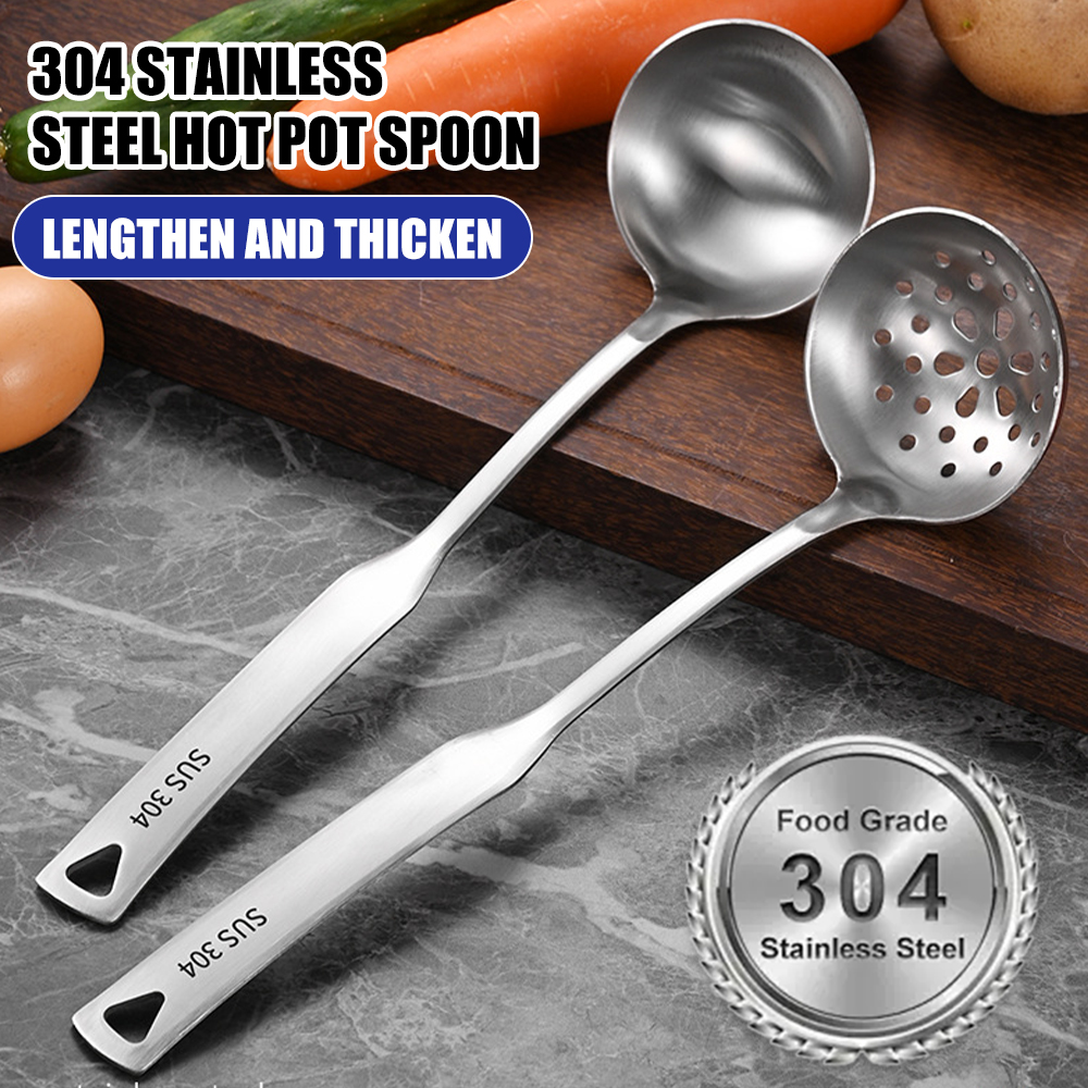304 Stainless Steel Hot Pot Spoon and Slotted Spoon, Household Long-Handled Soup Ladle, Large Soup Spoon for Hotels and Restaurants, Soup Ladle with Strainer