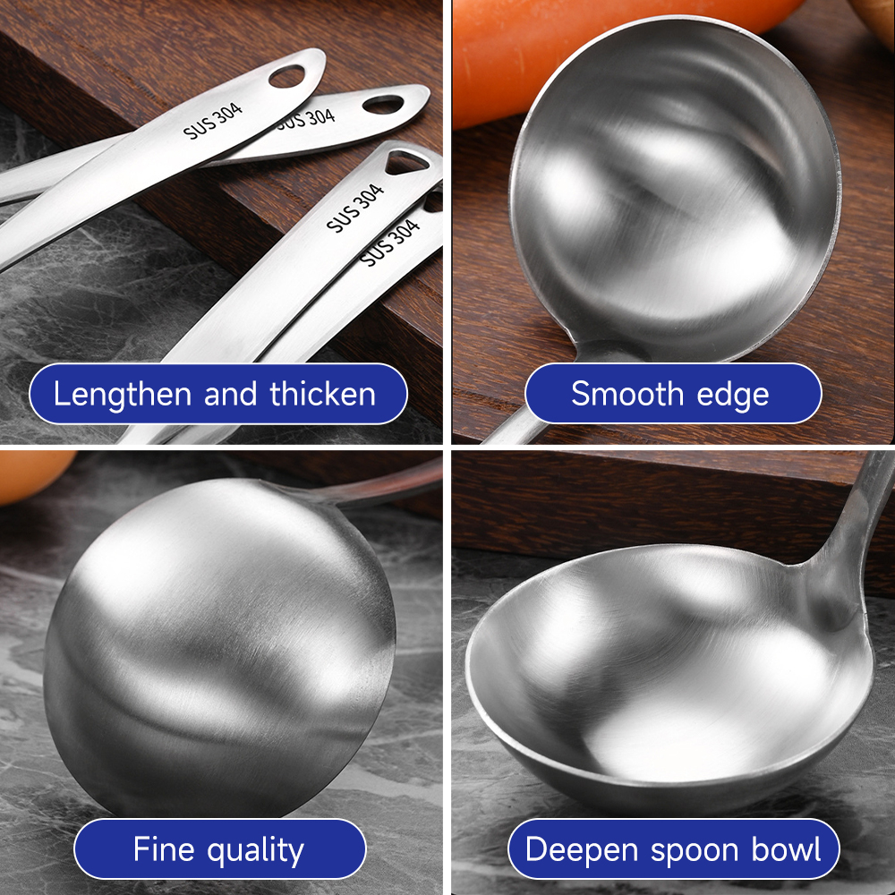Introducing our impeccably crafted cooking spoon made from high-quality 304 stainless steel, designed to elevate your kitchen experience. Each detail of this polished long-handled spoon speaks of durability and sophistication, ensuring it stands the test of time through repeated use. This cooking spoon is ideal for both the avid home cook and professional chef who values premium tools in their kitchen.