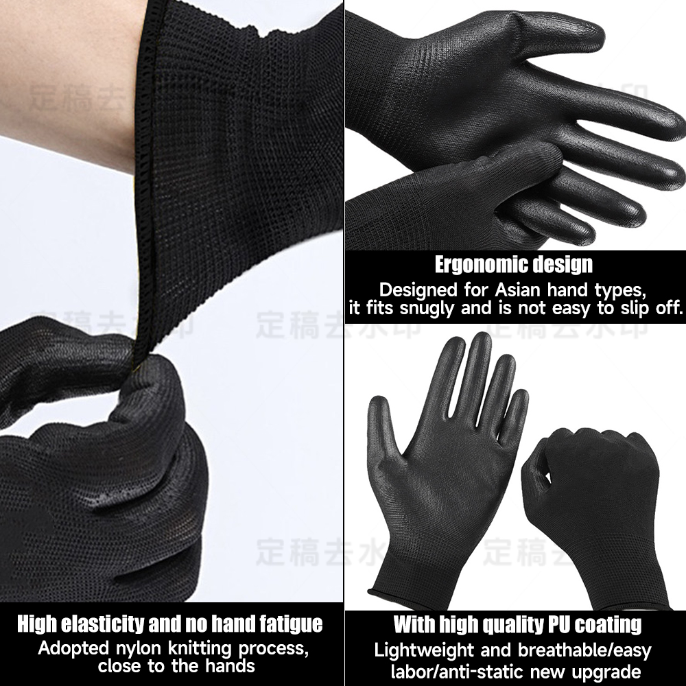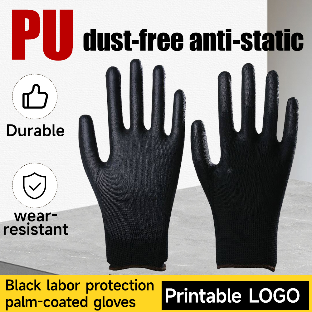 Black PU Coated Palm Gloves, Dust-Free, Anti-Static Coated Work Gloves for Electronics Factories, Wholesale Black and Gray Coated Palm Gloves