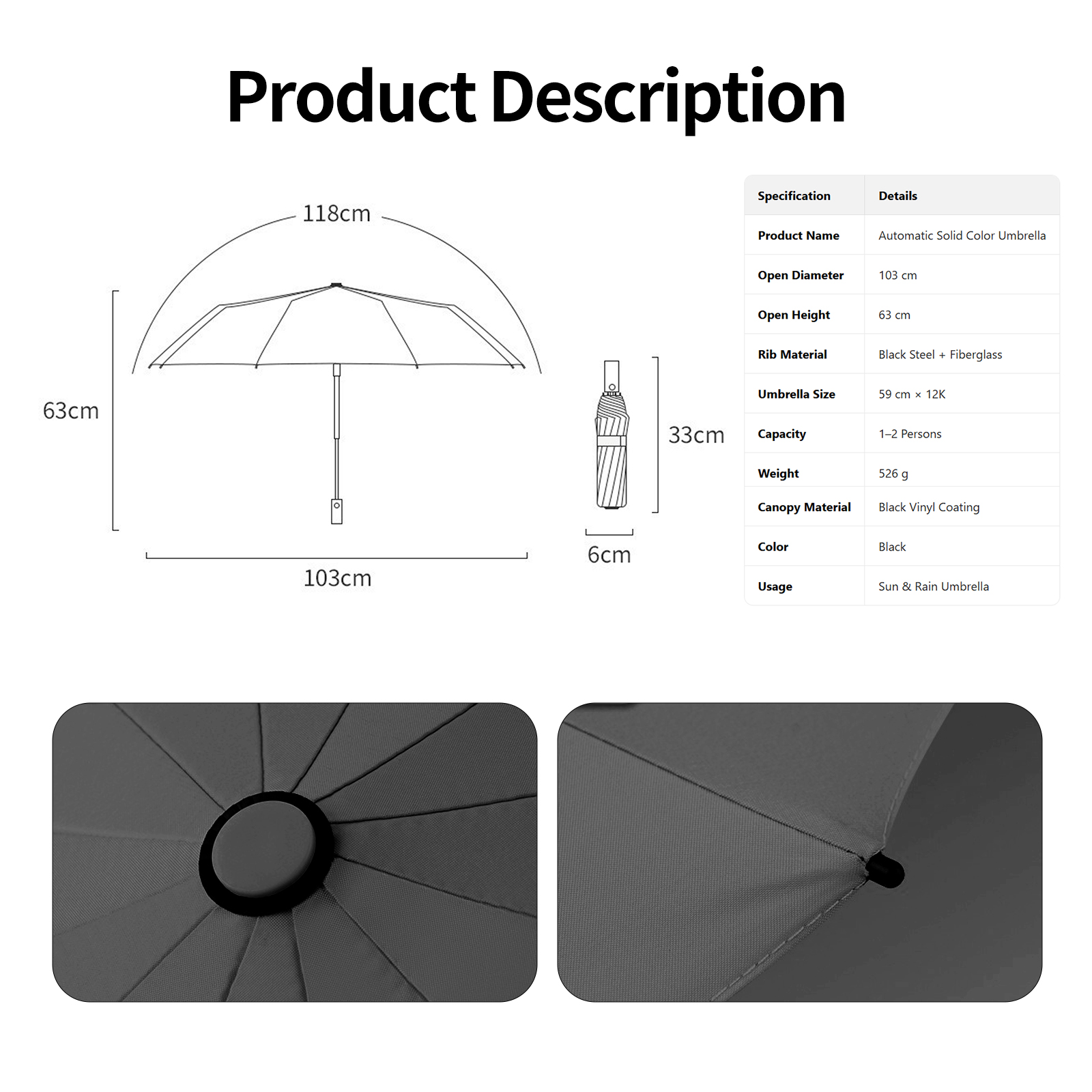 Built to last, this umbrella features a sturdy frame made from high-quality iron, ensuring long-term durability and resistance against wear and tear. The canopy, crafted from pongee fabric, offers excellent water resistance, dries quickly, and provides maximum coverage during rain. With 12 ribs working together to support the canopy, this umbrella promises superior wind resistance to keep you shielded even in adverse conditions.