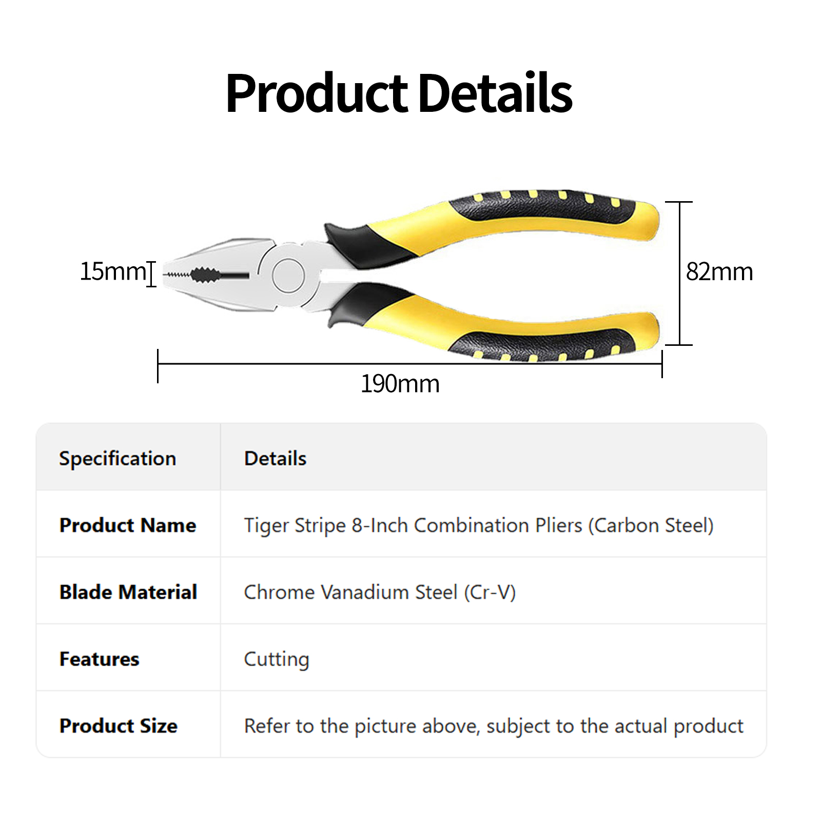 Crafted from high-quality Chromium Vanadium Steel (Cr-V), these 8-inch combination pliers are designed to withstand rigorous use without compromising on performance. The robust material ensures excellent resistance against wear and corrosion, making it a reliable tool for the most demanding tasks. Whether you’re working on electrical projects or general maintenance, this tool promises durability and longevity.