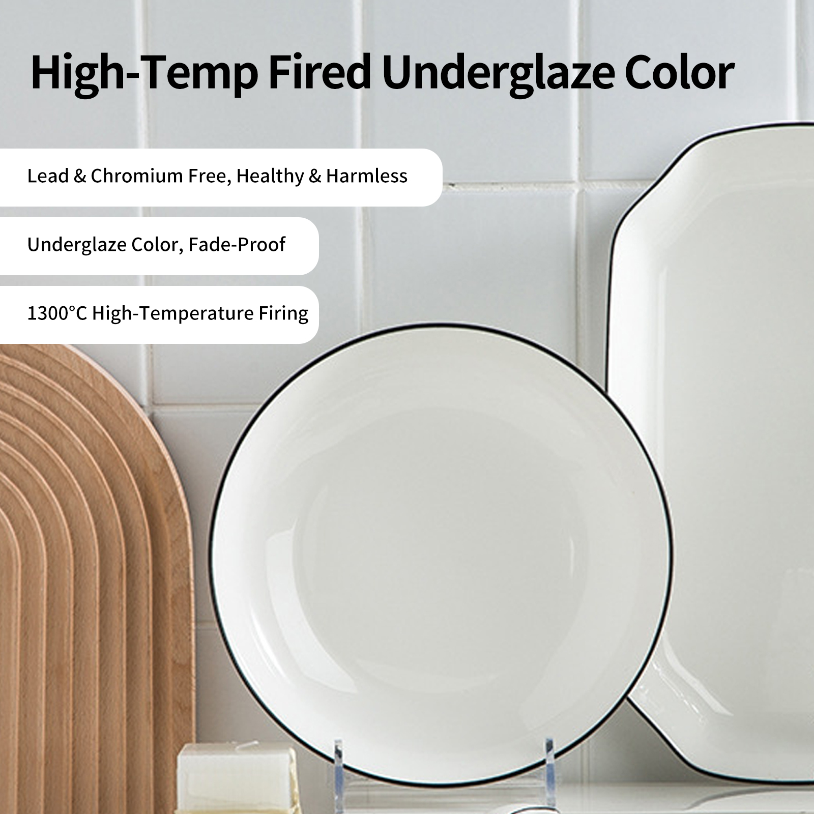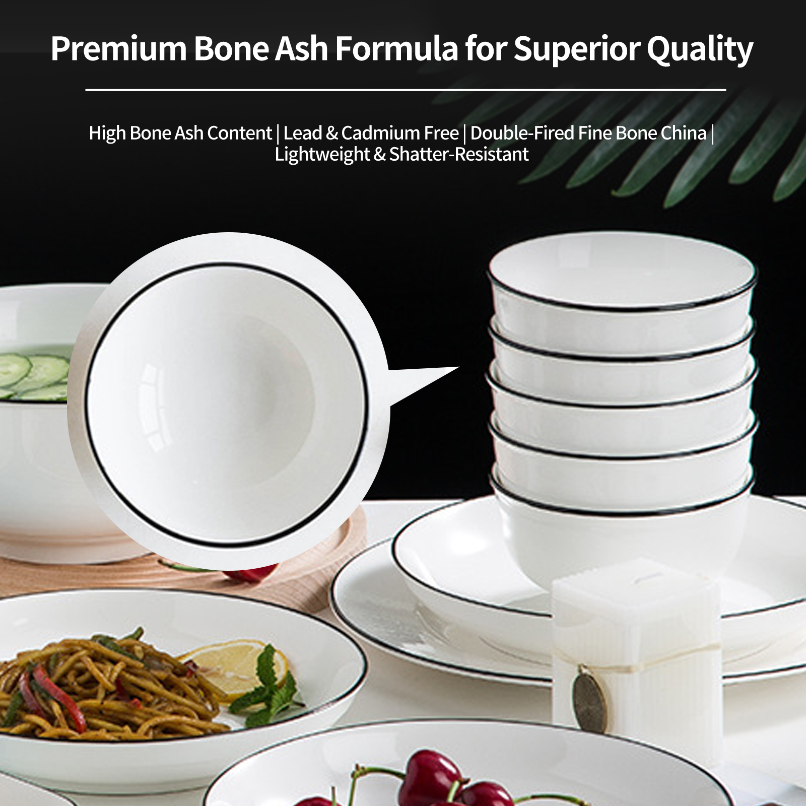 Jingdezhen Ceramic Underglaze Dinnerware Set – Bowls, Plates, Dishes, Noodle Bowl, Fish Plate, Soup Bowl, Black Line Ceramic Bowls