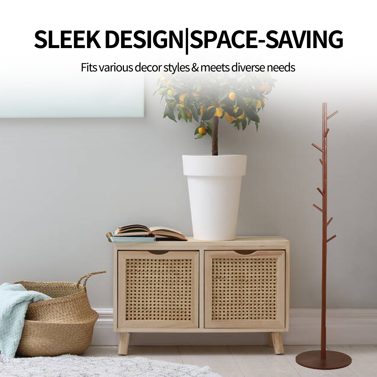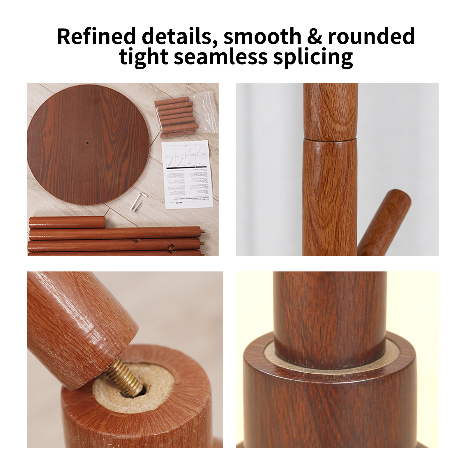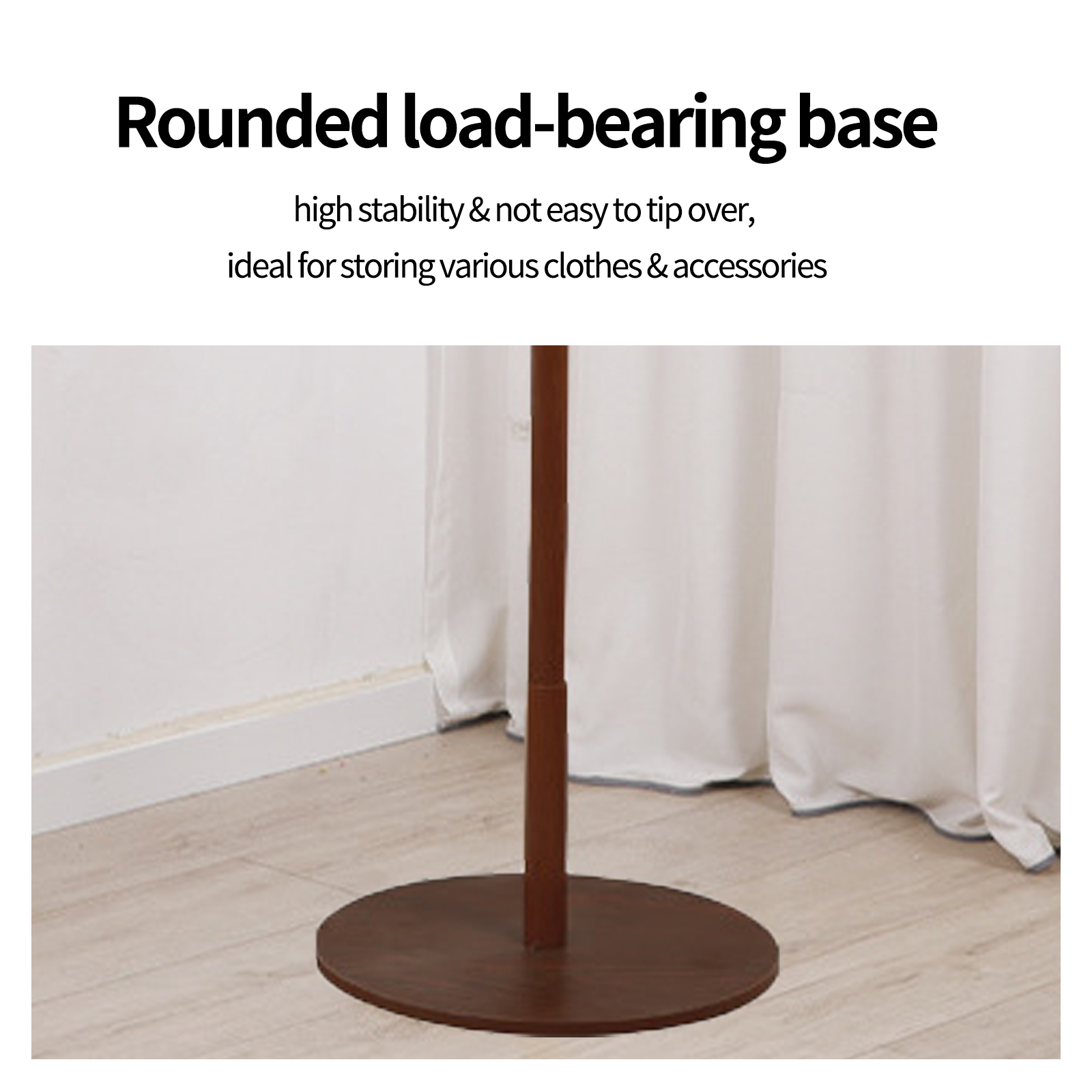 Solid Wood Floor-Standing Coat Rack with Round Base, Bedroom Clothes Hanger, Home Entrance Hallway Clothes Rack, Dormitory Bag Hanger