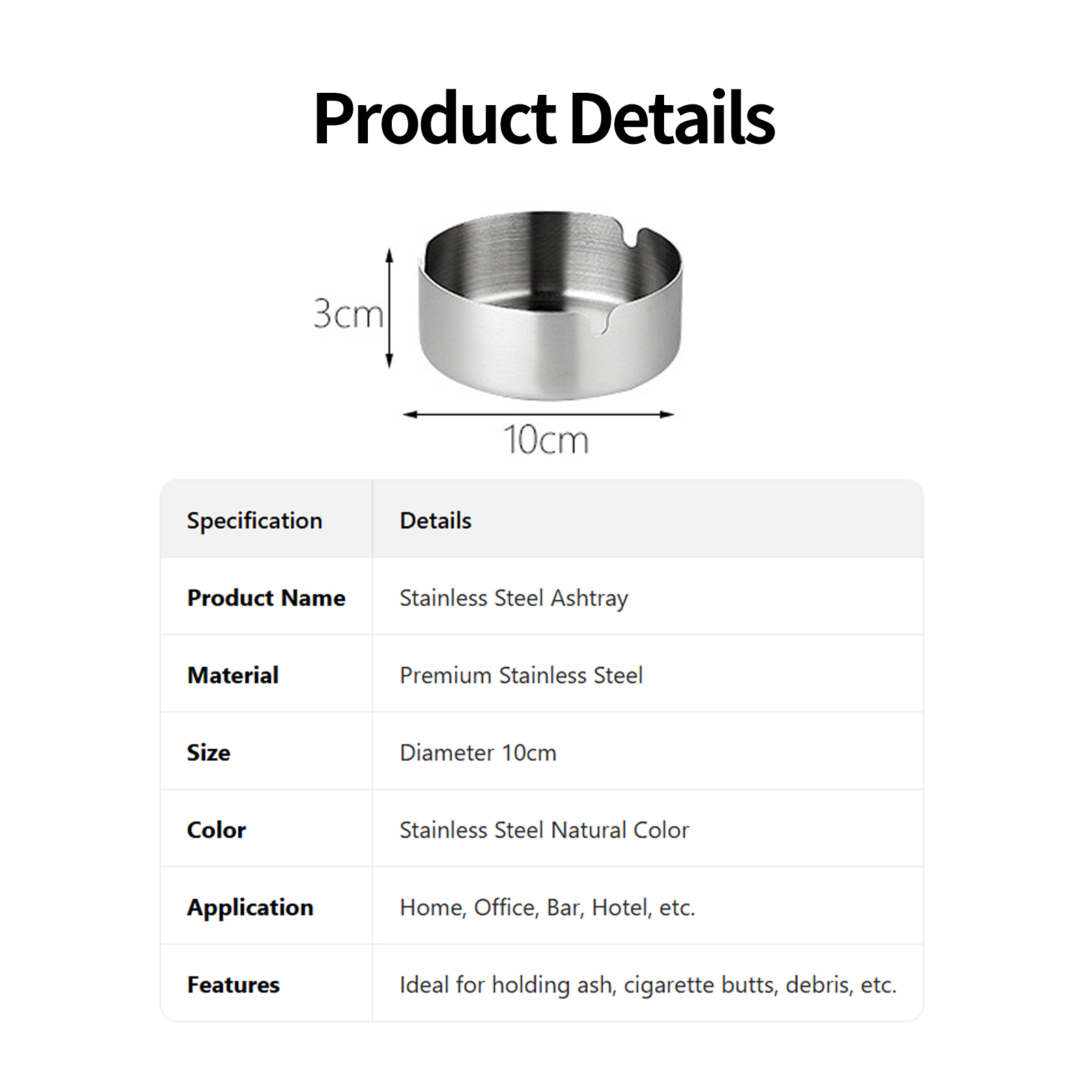 Thickened Durable Stainless Steel Ashtray for Bars and Internet Cafes, Gold Ashtray, Direct Supply from Manufacturer