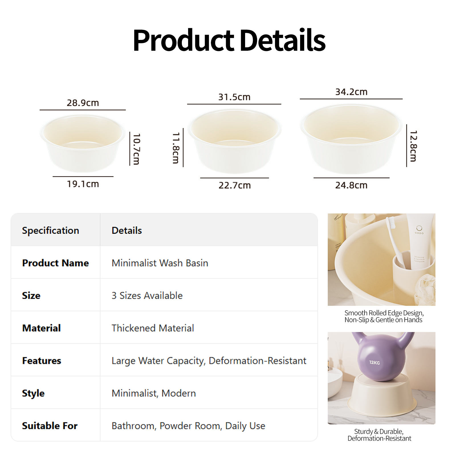 Thickened Washbasin for Student Dormitories, Home Kitchen, Large Vegetable Washing Basin, Cream-Style Plastic Basin
