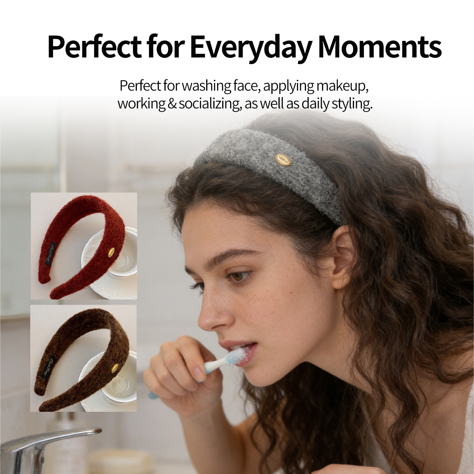 Wool Oval Gold Label Wide Headband, Autumn/Winter High Crown Hairband, Versatile and Stylish Headband for Outings